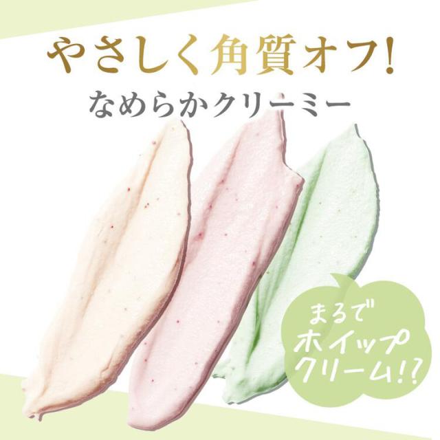 ●肌にふわとろ!まるで生クリームのようなテクスチャー。スクラブ成分*1 配合で、摩擦を抑えながらくすみ・黒ずみの原因となる古い角質をやさしく落とすことができます。