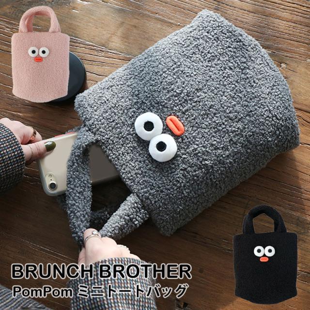 ブランチブラザー ポムポム ミニトートバッグ Brunch Brother pompom もこもこブークレ プチバッグ あったか バッグ 直輸入正規品 かわいい 韓国 人気 プレゼント ギフト対応可 【全国一律送料無料】 ROMANE ピンク もふもふ ふわふわ
