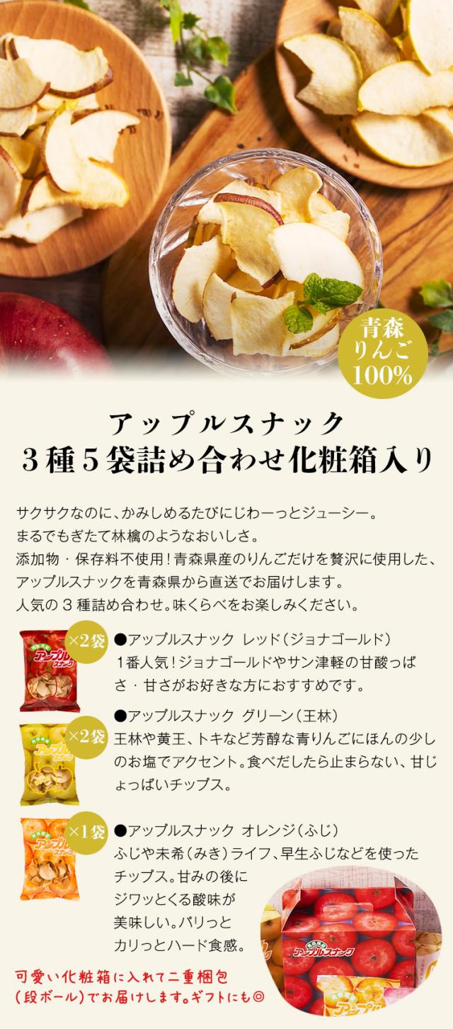 りんごチップス アップルスナック 3種 5袋セット 化粧箱 二重梱包 青森県産 添加物・保存料不使用 産地直送 産直 常温便 同梱不可 指定日不可