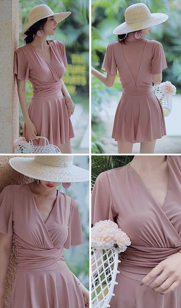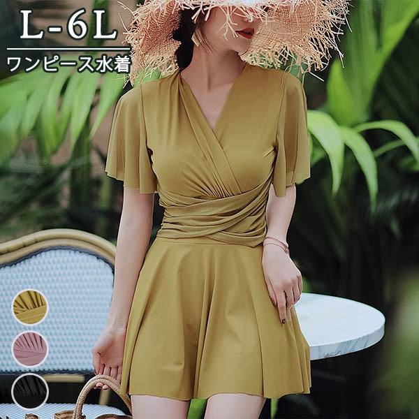 ワンピース水着 ぽっちゃり 水着 レディース 大きいサイズ 韓国 クロスデザイン フレアスリーブ ガール 可愛い 袖付き 痩せ見え 体型カバー 花柄 温泉 ビーチ プール 海 水泳 セクシー オトナ女子 かわいい 黒 ブラック ピンク イエロー