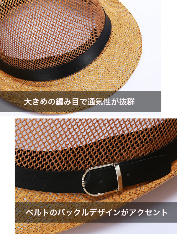 麦わら帽子 メンズ メッシュ ハット 風通し UVカット 紫外線対策 夏用帽子 アウトドア 夏 メール便のみ送料無料2