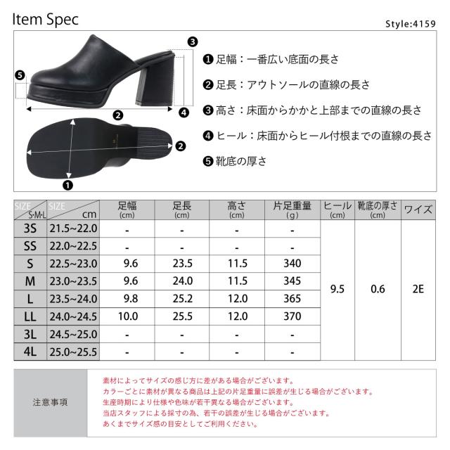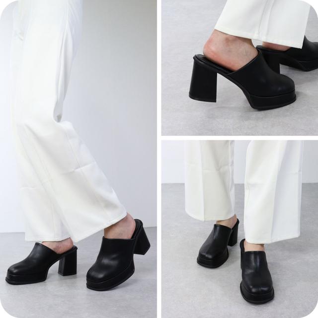 サンダル レディース ミュール つっかけ 太ヒール 安定感 スタイルアップ 9.5cmヒール No.4159 22.5cm〜24.5cm 黒 ブラック LiBERTYDOLL リバティードール