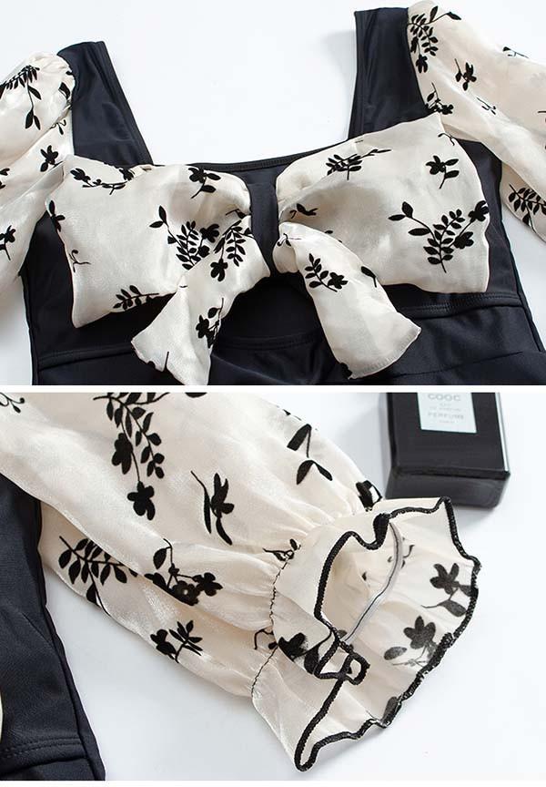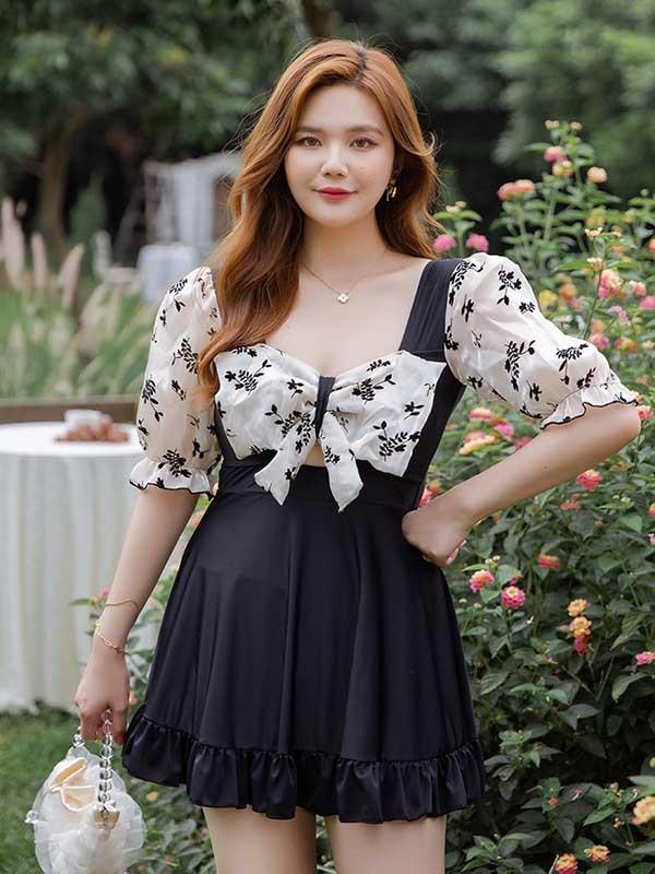 ワンピース水着 ぽっちゃり 水着 レディース 大きいサイズ 韓国 ビグリボン カットアウト 可愛い 袖付き フリル 胸開き 痩せ見え 体型カバー ぽっちゃり水着 温泉 ビーチ プール 海 水泳 セクシー オトナ女子 かわいい 黒