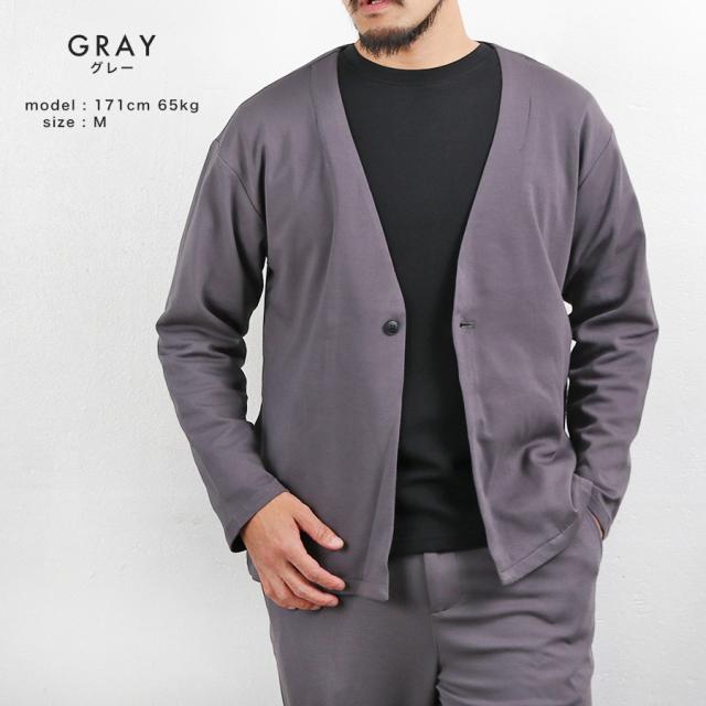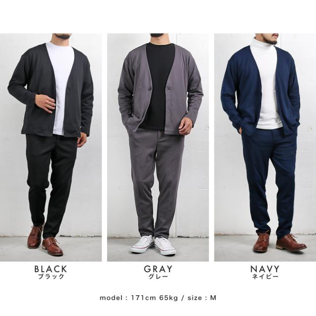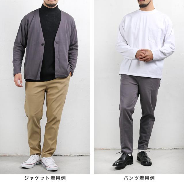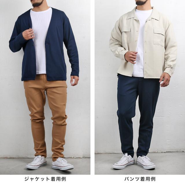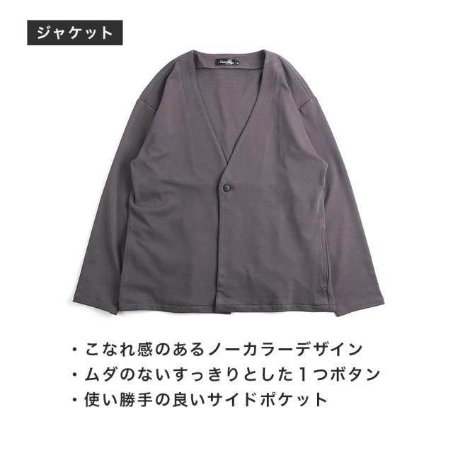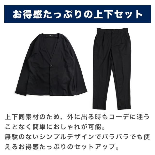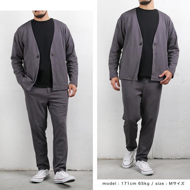 セットアップ メンズ テーラードジャケット 上下セット ストレッチ ノーカラー アンクルパンツ 宅配便 送料無料