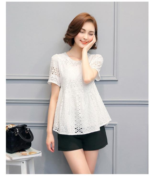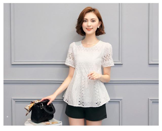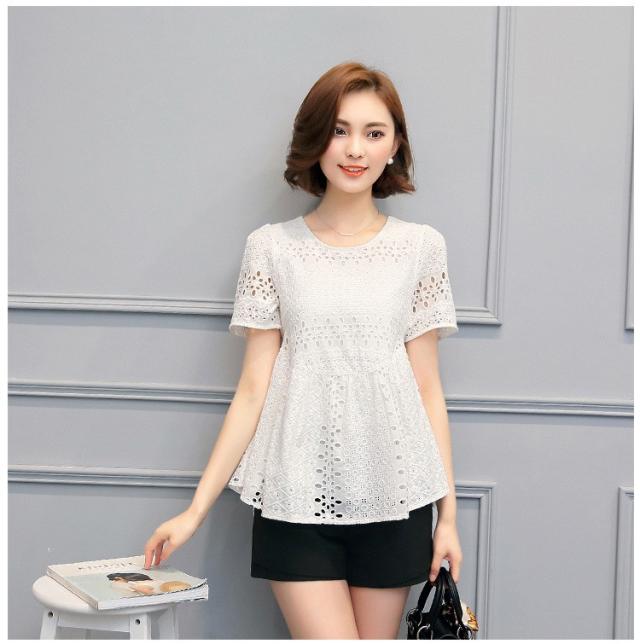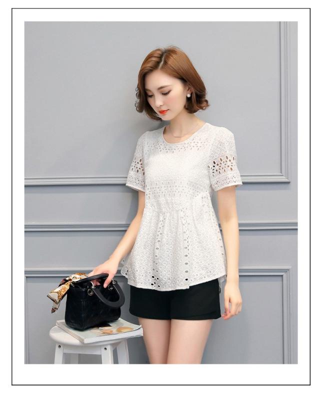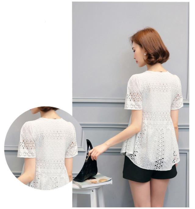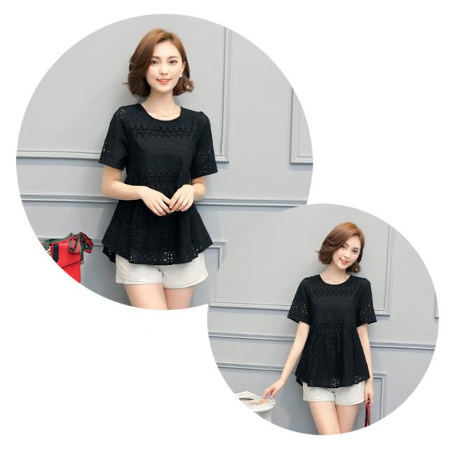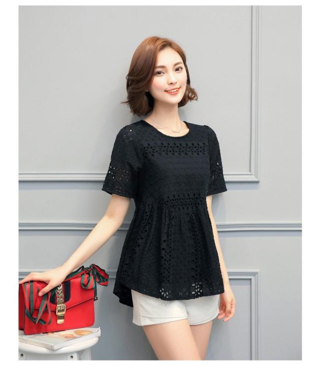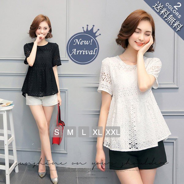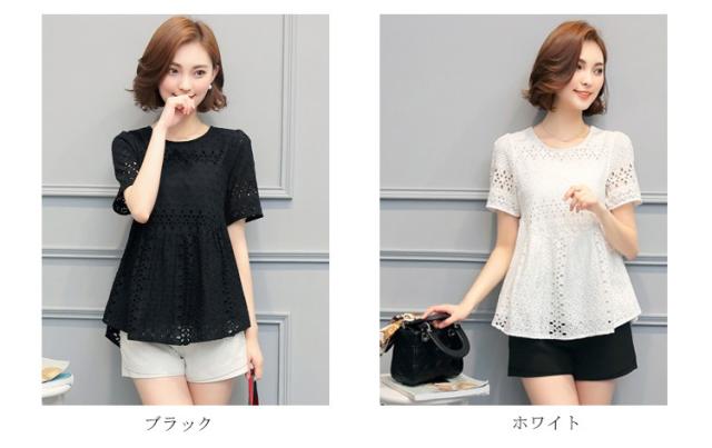 ブラウス レース レディース トップス シャツ ブラウス 半袖 クールネック ゆったり 上品 かわいい デート カジュアル ブラウス