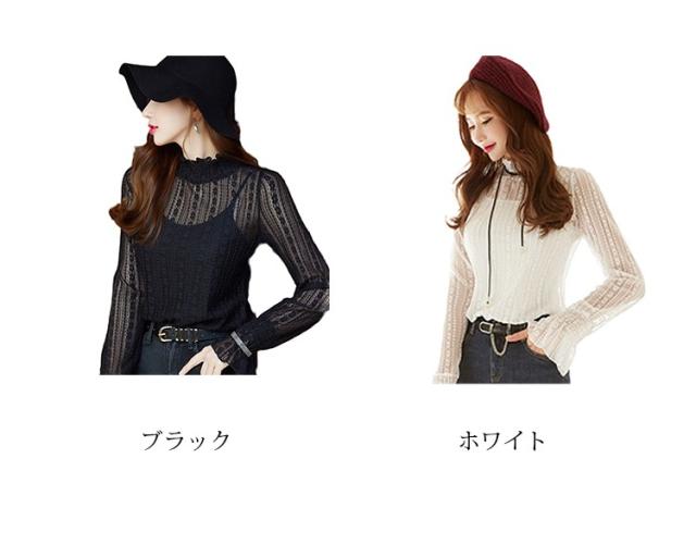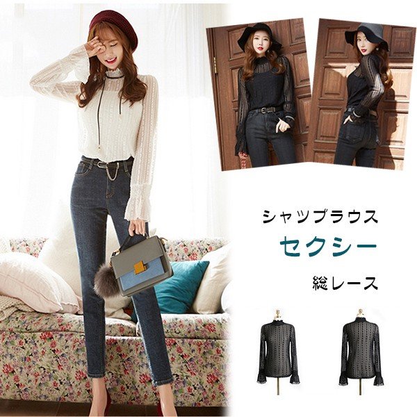レースブラウス レディース 長袖 ハイネック インナー 総レース シースルー セクシー プルオーバー トップス おしゃれ きれいめ 春夏秋aar