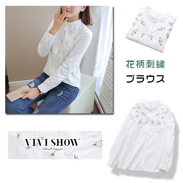 ブラウス レディース トップス シャツ ブラウス カジュアルシャツ エレガント ブラウス 長袖 コットン 刺繍柄 花柄 上品 2020 春秋 新作