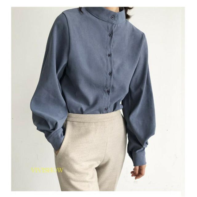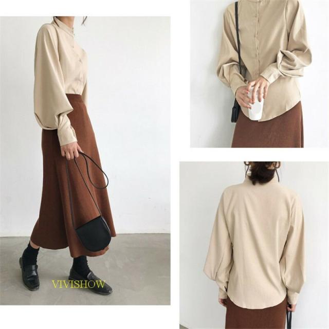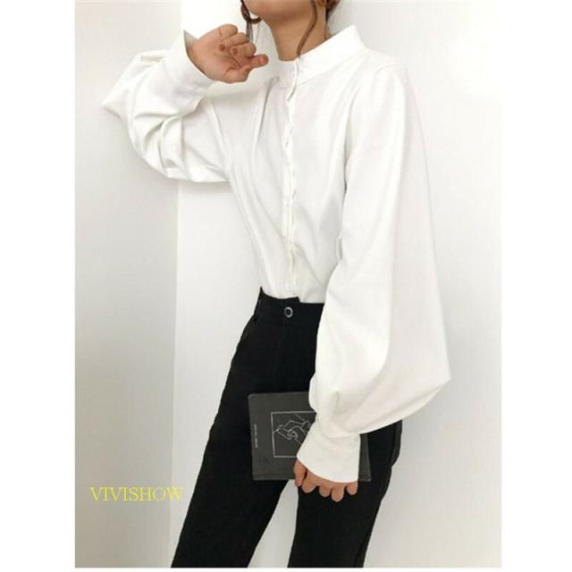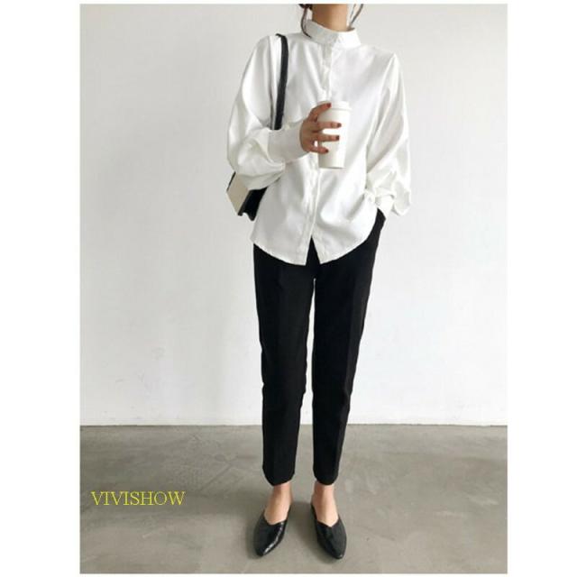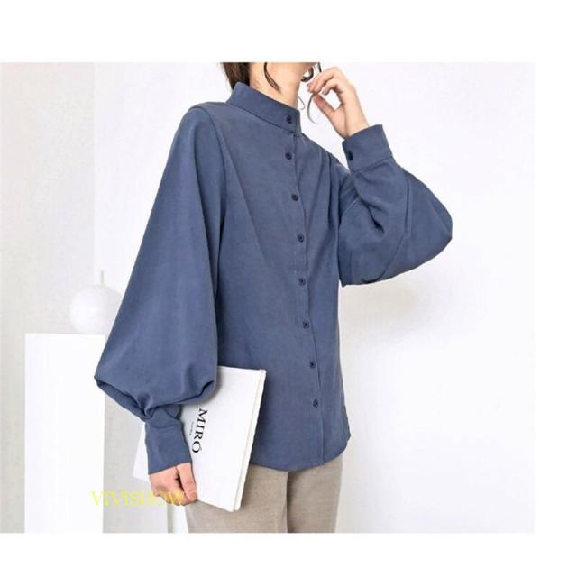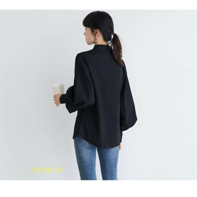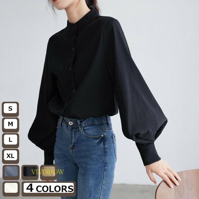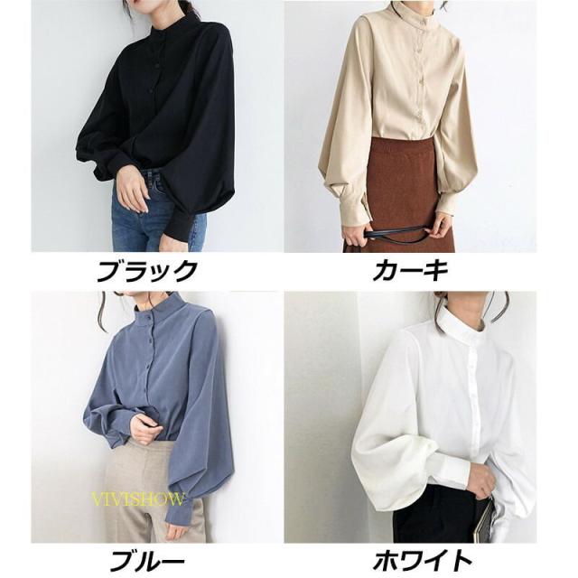 レディース ブラウス シャツ トップス シフォン バルーンスリーブ長袖 おしゃれ 上品 フ 着痩せ ベーシック シンプル 体型カバー きれいめ 無地