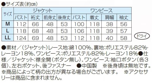 ●素材/(ジャケット)レース地:綿100%、裏地:ポリエステル82%・レーヨン18%、ワンピース:ポリエステル8 2%・レーヨン1 8 %