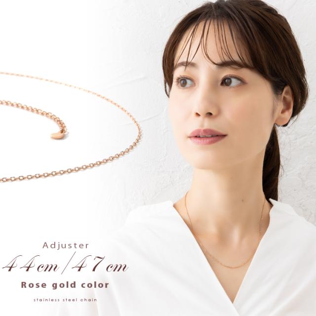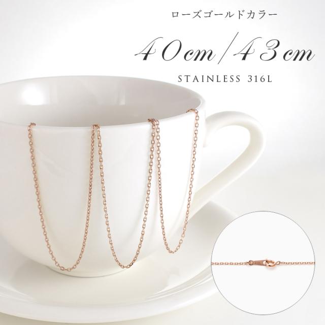 チェーン ネックレス レディース サージカルステンレス 40cm 43cm 細身幅1.1mm ローズゴールドカラー 4面カットあずき 小豆 金属アレルギー対応 316L ギフト プレゼント 贈り物 誕生日 記念日 ランキング ホワイトデー クリスマス gnssc04_rg_40cm_43cm