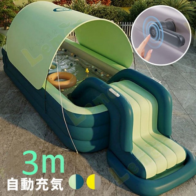 プール すべり台付き 大型 家庭用 電動ポンプ付き 滑り台付き ビニールプール 屋根付き シェード付き スライダー 大きい 長方形 送料無料