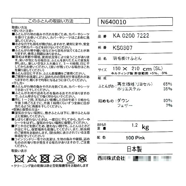 [ keyword | 羽毛が片寄らない 西川 羽毛布団 マザーグース シングル ダウン93% 1.2kg 430dp シングル 150×210 完全立体キルト 国内洗浄 シベリア フレッシュアップ 高級 羽毛布団 日本製 ピンク ブルー 430ダウンパワー KU2022 カバー付き ]