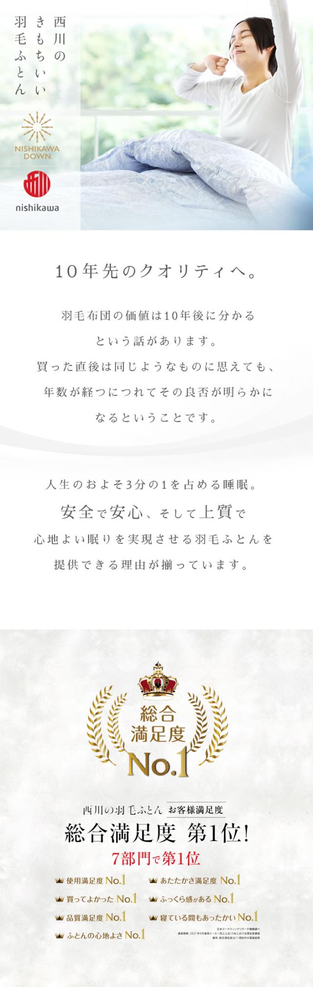 総合満足度第一位!高品質な西川ダウンの羽毛ふとん 1.2キロ 本当に良い素材で設計された羽毛布団は数年後の姿が違います 人生の節目や門出の良き日に価値ある贈り物をしたい方へ。