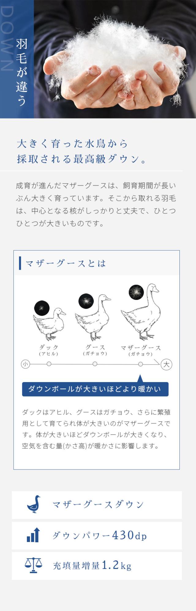 【和晒ひとえカバー付】西川 羽毛布団 グース シングル マザーグース 150×210 ダウン93% 増量1.2kg 430dp 完全立体キルト 国内洗浄