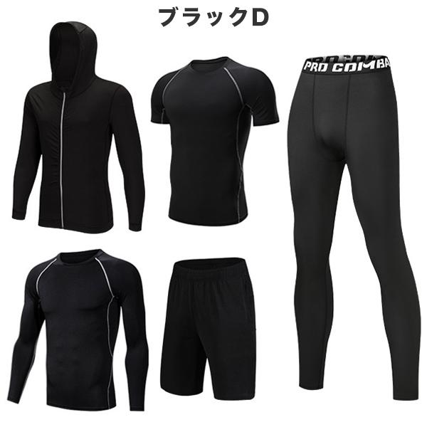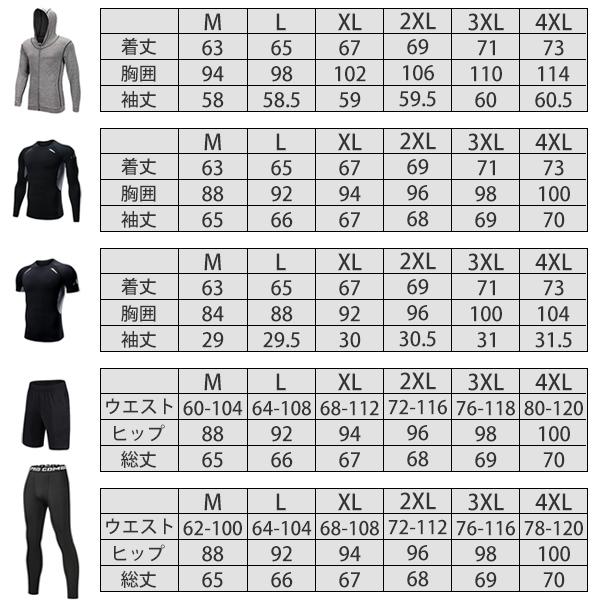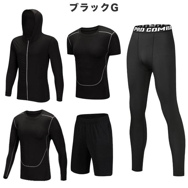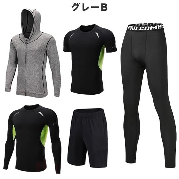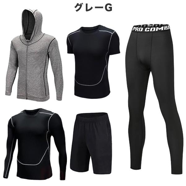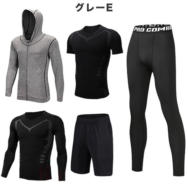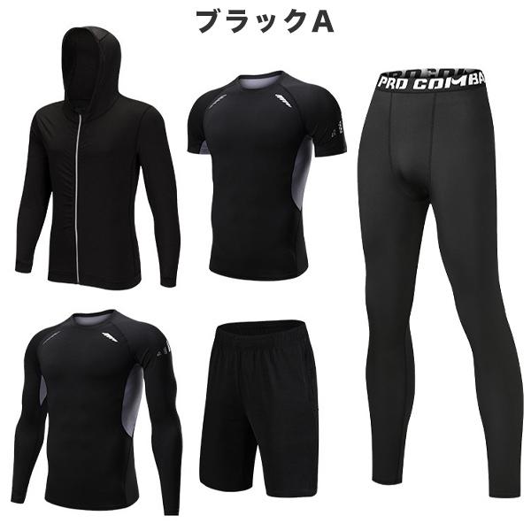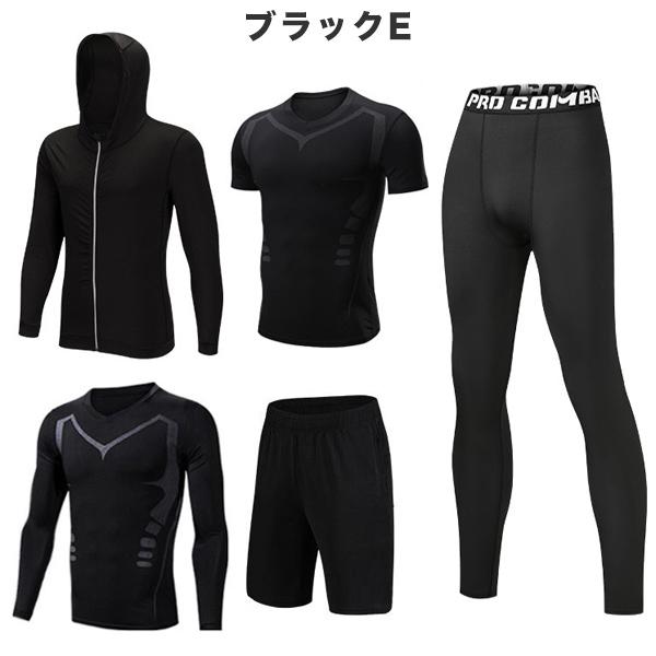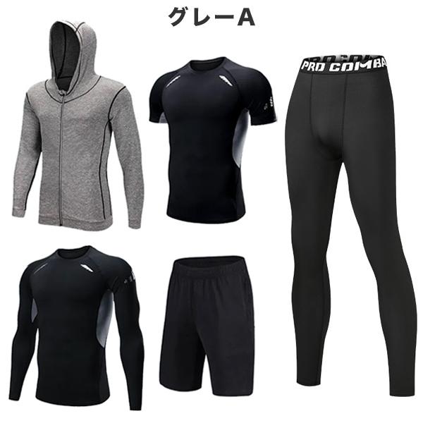 トレーニングウェア フィットネスウェア メンズ 5点セット ジム コンプレッション トップス パンツ 上下セット 吸汗 速乾 機能性 ラッシュガード 運動