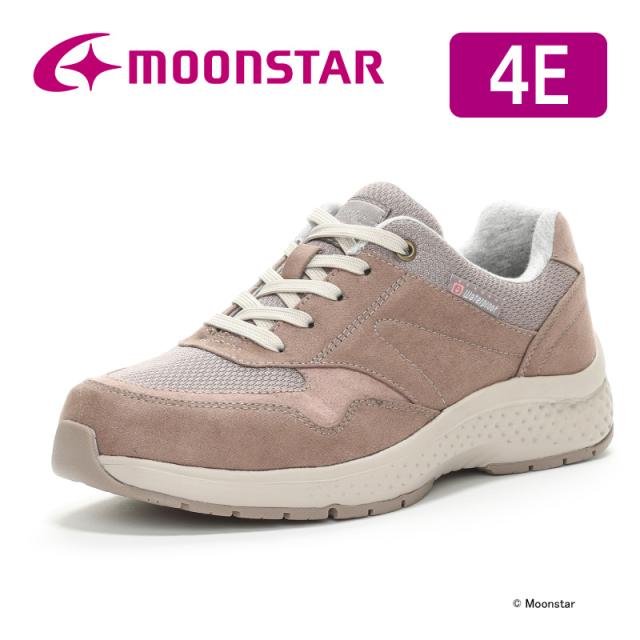 ムーンスターのレディース防水スニーカーです。雨の日でも履ける「4cm 4時間防水」機能を搭載しています。つま先がゆったりした幅広4E設計の防水スニーカーです。屈曲性が良くて歩きやすい、軽快な履き心地です。ウォーキングやお仕事、旅行やレジャーなどに幅広く対応します。ヒールの高さは4.0cmで、重量は23.0cmで片足約270gです。【ワイド設計】足幅の広い方に対応した商品です。【つま先ゆったり】つま先にゆとりをもたせた形状で、足の指を圧迫せずにのびのび動かせます。【通気カップインソール】通気性に優れた素材で靴内を快適に保ち、カップインソールの特性を併せ持ちます。【Ag+抗菌防臭】銀イオンの抗菌作用でにおいのもととなる菌の増殖を抑制し、防臭効果を発揮します。天然由来成分で安全です。【防水設計(4cm 4時間防水)】地面から4cm、4時間の浸漬状態での防水性を備えた防水機能です。