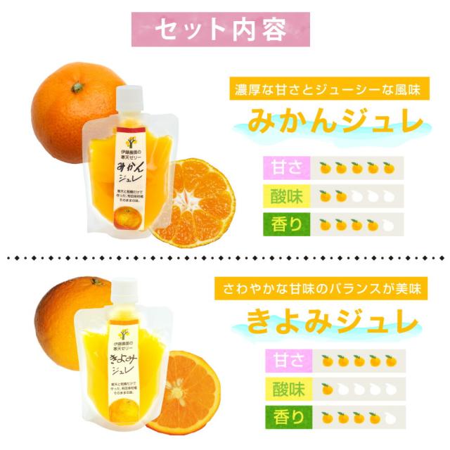 伊藤農園の100%ピュアジュースをベースに安心、安全な美味しいゼリーが出来上がりました。4種の柑橘からお選びください。