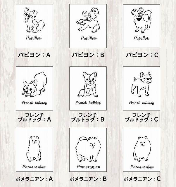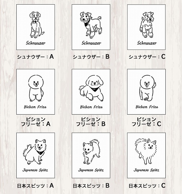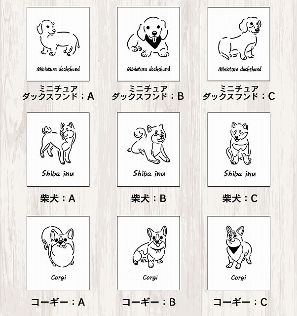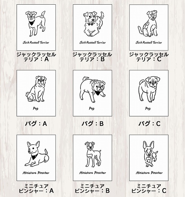 15犬種×3パターンの全45種類からお選びいただけます。