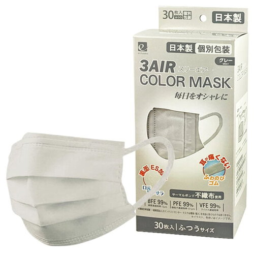 日本製 3AIR カラーマスク グレー 30枚入り マスク ウイルス 花粉