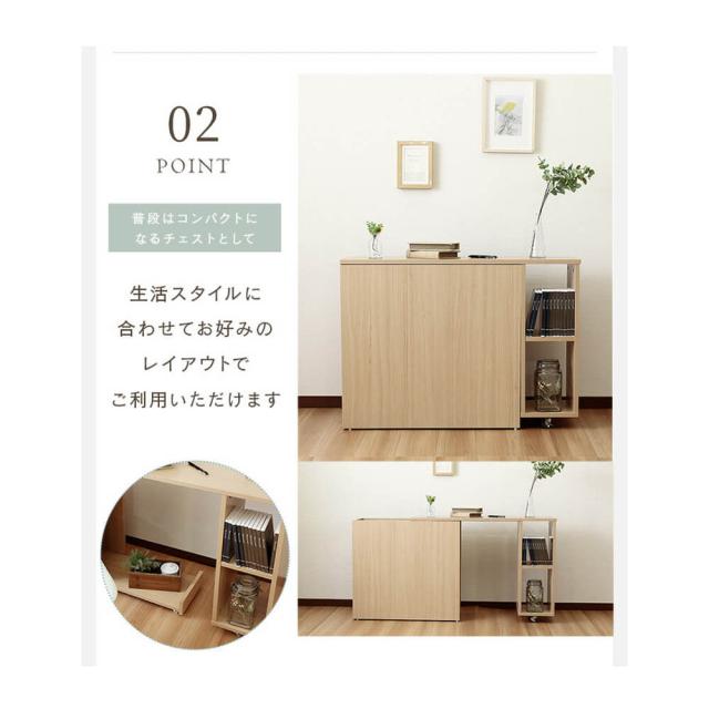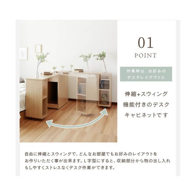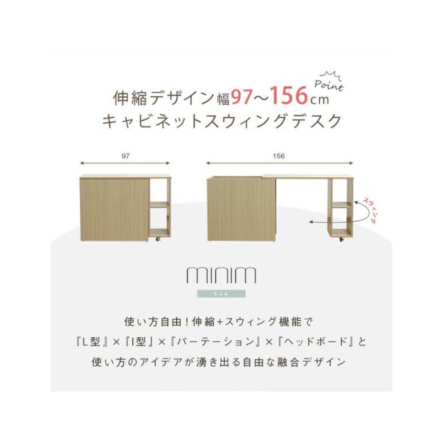 Nama(ナーマ) キャビネット式スウィングデスク 伸縮デスク 幅97〜156cm スリム 奥行30cm スリムデスク シェルフ