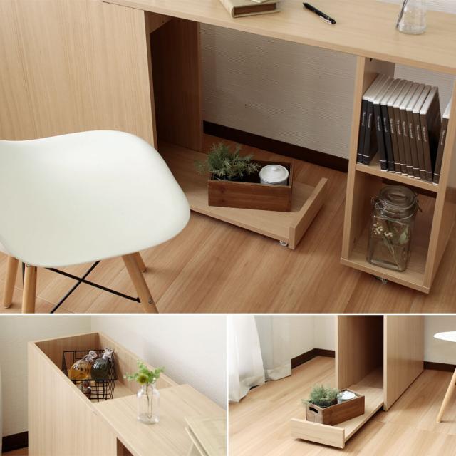L字型にすると、収納部分から物の出し入れ もしやすくストレスなくデスク作業ができますよ。