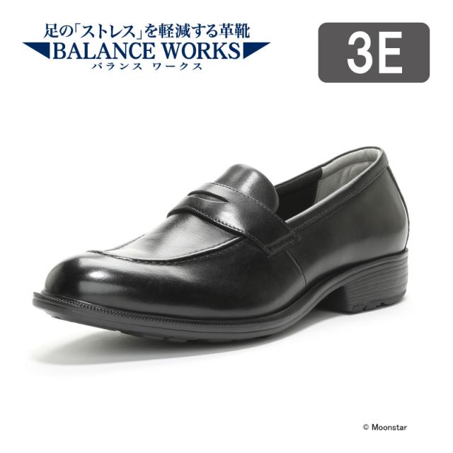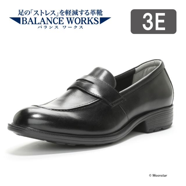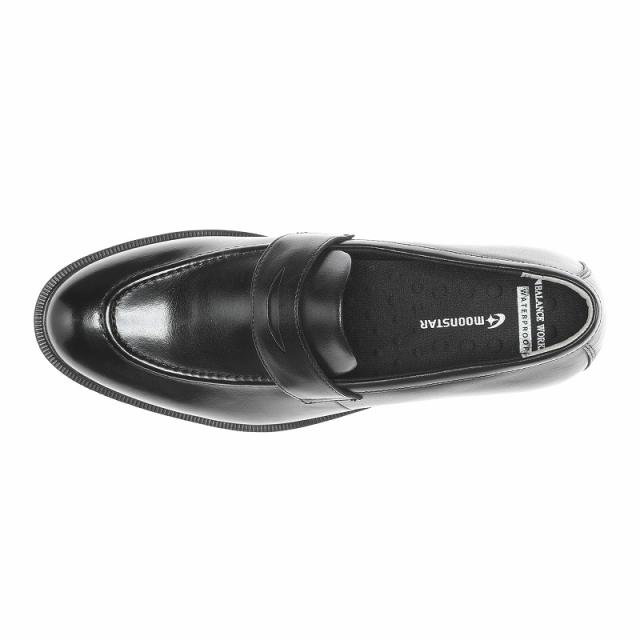 送料無料 紳士靴 ムーンスター バランスワークス メンズ 本革 防水 ビジネスシューズ コインローファー BW4645 ブラック 黒 moonstar 3E 革靴 軽い 天然皮革 軽量 春 入学式 卒業式 入社 社会人 就職