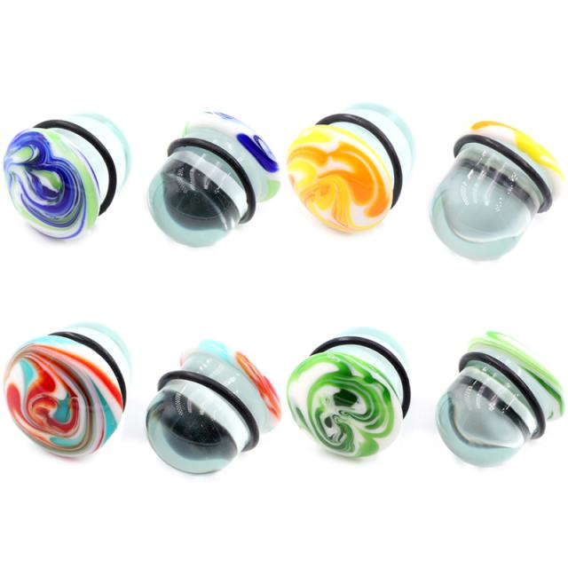 ビー玉のようなマーブル柄の弾丸型のガラス製のプラグ型ボディピアス。