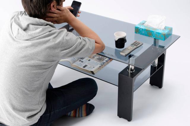 半透明ブラック色のガラス天板は、黒塗り塗装と違い、ガラスそのものに色を加えているので色剥げなどの心配がなく、長くお使いいただけます。