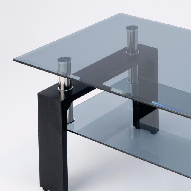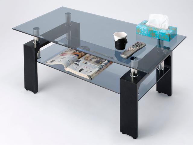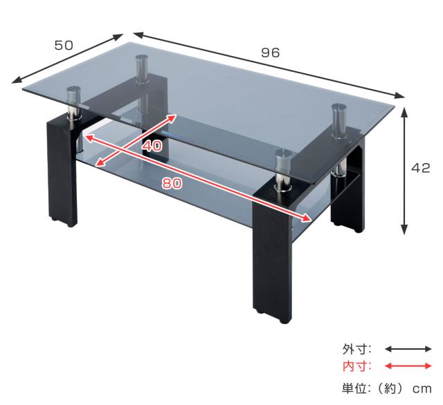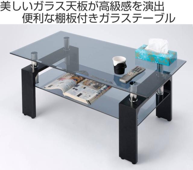 ガラステーブル 幅96cm クリアブラック ラック ( センターテーブル ローテーブル リビングテーブル ガラス テーブル ガラス天板 収納 リビング おしゃれ モダン 高級感 スタイリッシュ 半透明 棚付き )