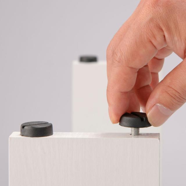 高さの微調整が可能なアジャスター付きです。フローリングやカーペットの小さな段差のがたつきを抑えることができます。