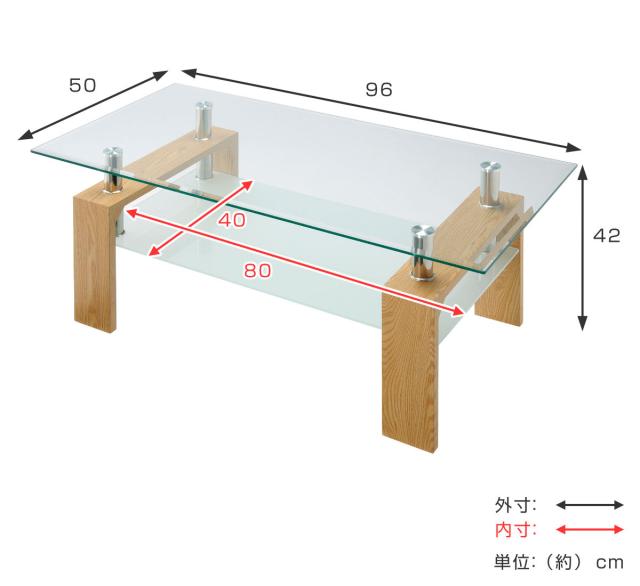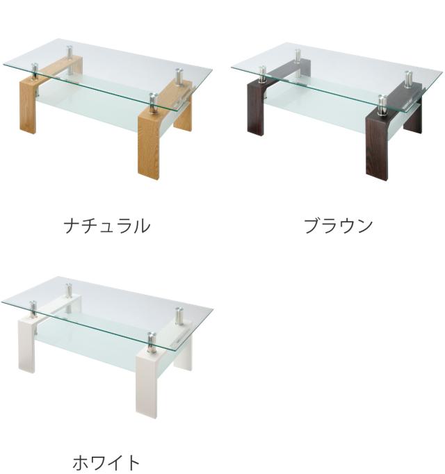 ガラステーブル 幅96cm クリア ラック ( センターテーブル ローテーブル リビングテーブル ガラス テーブル ガラス天板 収納 棚付き リビング おしゃれ モダン 高級感 スタイリッシュ ナチュラル ブラウン ホワイト 白 )
