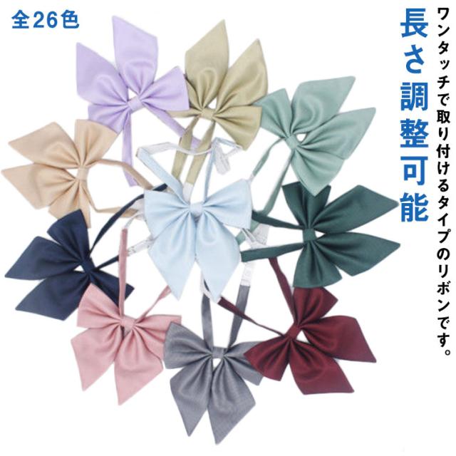 全26色 制服 リボン 卒業式 入学式 蝶結び ワンタッチ 長さ調整可能 無地 入学式 高校生 中学生 通学 学生 制服 学生服 セーラー服