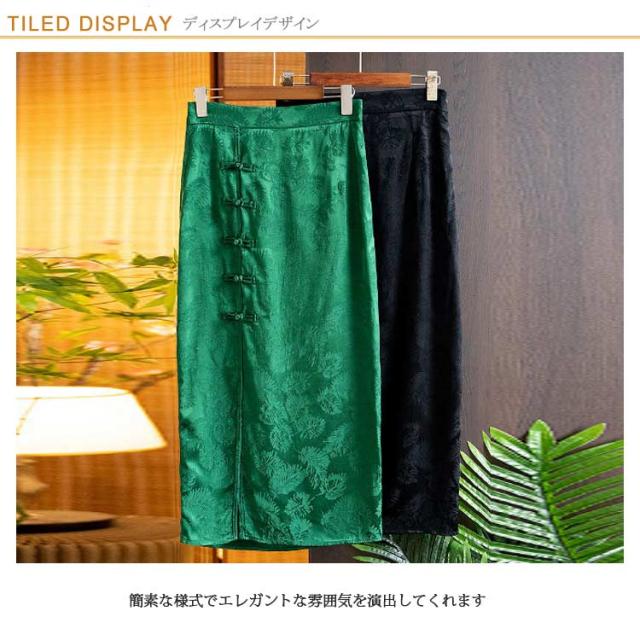 | シンプルでデザイン性のあるロングスカート 簡素な様式でエレガントな雰囲気を演出してくれます ロング丈で淑やかな印象を与えます チャイナ風ボタン飾りで個性度アップ | |