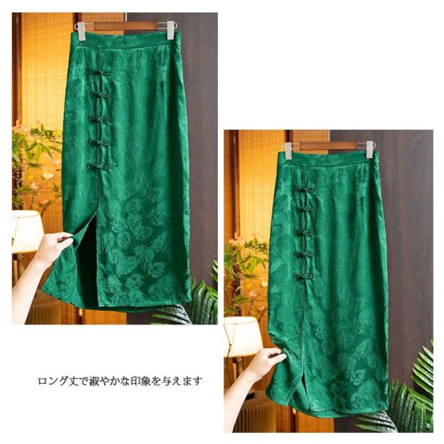 送料無料 スカート 女性 ファッション レディース ロング チャイナドレス カジュアル 大きいサイズ 春 夏 秋 Aラインスカート 無地 チャイナ風 中国風 40代 50代 60代 エレガント シンプル お洒落 キレイめ 普段着 ボトムス