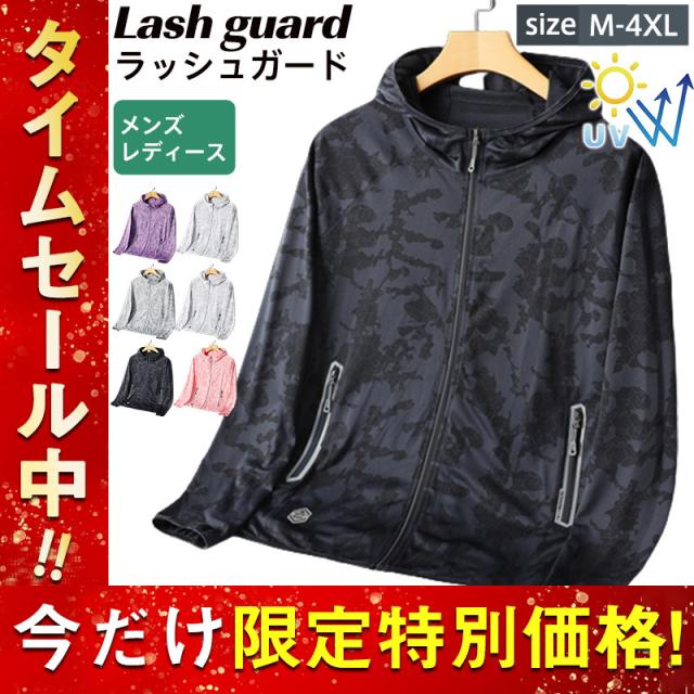 ラッシュガード メンズ レディース UVカット 日焼け防止 冷感素材 ジップアップ フード付き 通気性 迷彩柄 ペアルック 薄手