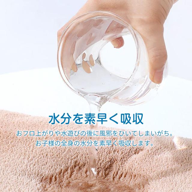 【水分を素早く吸収】お風呂上りや水遊びの後に風をひいてしまいがち。お子様の全身の水分を素早く吸収します。