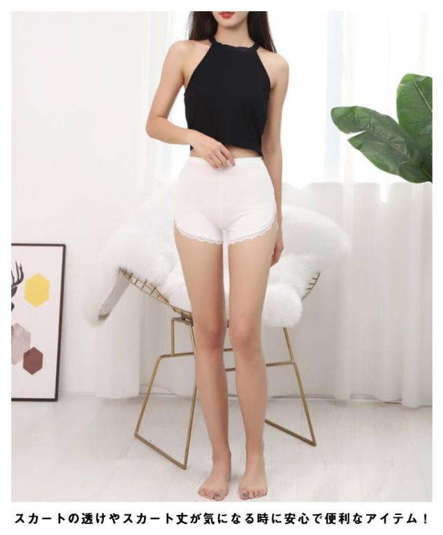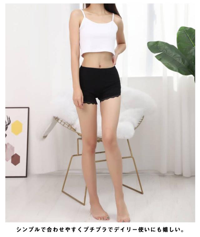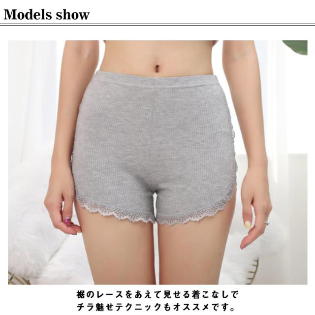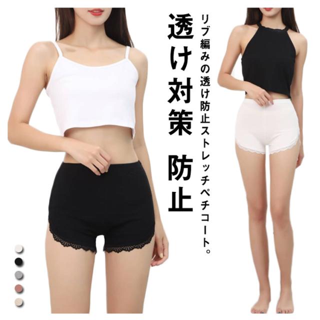 ペチパンツ レース リブ編み インナーパンツ 透け対策 防止 ペチコート レディース 夏用 インナーパンツ ショートパンツ インナースカート 見せパン 無地 ウエストゴム シンプル 肌着 部屋着 ルームウェア チラ見せ防止 大人 可愛い 送料無料