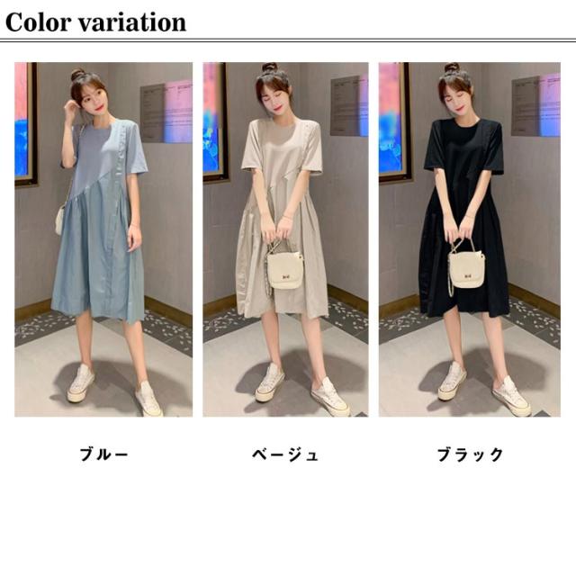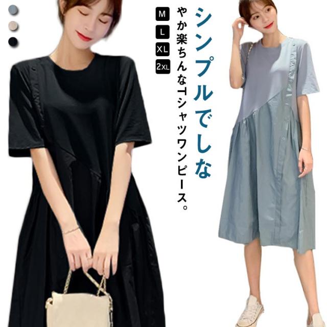 マタニティ ワンピース マタニティウェア ビッグT Tシャツワンピース 半袖 夏 切替 レディース ミモレワンピース ラウンドネック 無地 薄手 柔らか 上品 かわいい おしゃれ ママ 産前 産後 臨月 ルームウエア 普段着 送料無料