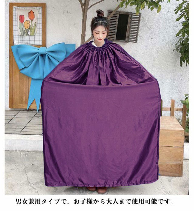 | 更衣室やロッカーの満室時、人目を気にせずサッと着替えが出来ます。 中が透けて見えなません。軽量で持ち運びも便利な巾着袋付き。 首元がゴム仕様になっているのと生地面積も広いのですぐに着替えやすい。 男女兼用タイプで、お子様から大人まで使用可能です。 社交ダンス競技会場の限られたスペースで、さっとお着替えができます。 | |