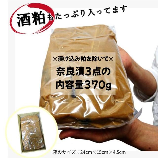奈良漬 お試し 三種セット うり きゅうり 守口大根 370g 国産 自宅用 漬物 漬け物 粕漬け おためし ポイント消費 ポイント消化