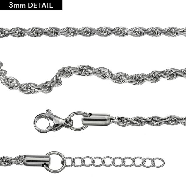 説明 | フレンチロープデザインのチェーンアンクレットです。ロープのようにねじった形状のチェーンは、光に当たるとキラキラと輝き注目度抜群です。素材には金属アレルギーを起こしにくく、水や変色に強いステンレススチールを使用しています。存在感のある幅感の3mm幅に繊細な印象の2mm幅と、コーデに応じてチェーン幅が選べます。1本だけでさらりと着けるのも様になる、細めでも存在感のあるアンクレットです。シンプルなデザインなのでペアで着けるのもオススメです。 |