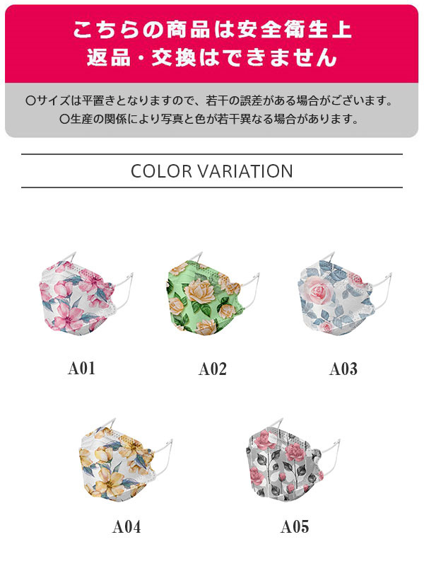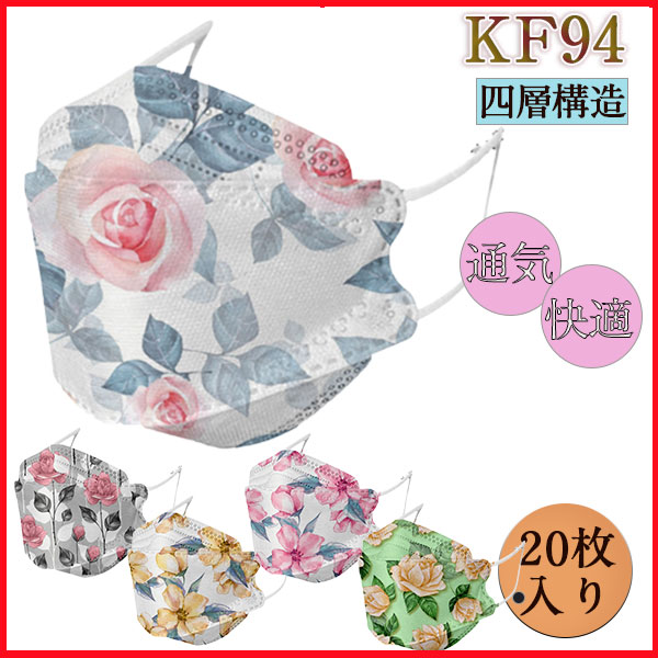 KF94 マスク 20枚入り 使い捨て 葉型 花柄 不織布 3D 立体 おしゃれ メイクが落ちない 大人用 通勤 通学 男女兼用 感染予防 秋冬