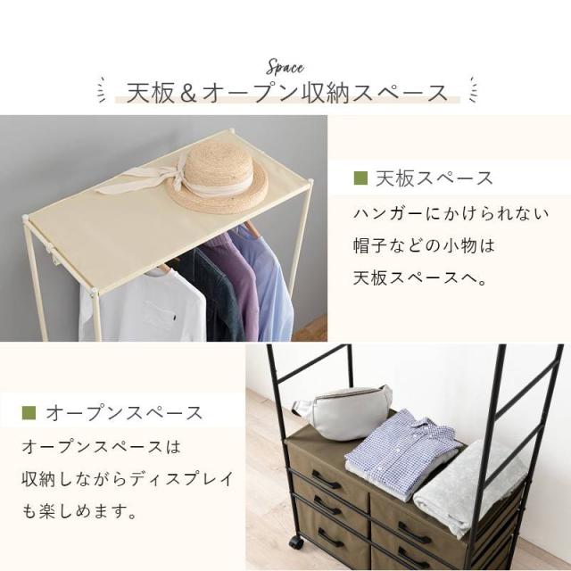 シンプルなデザインに引出し収納も兼ね備えたハンガーラック。
