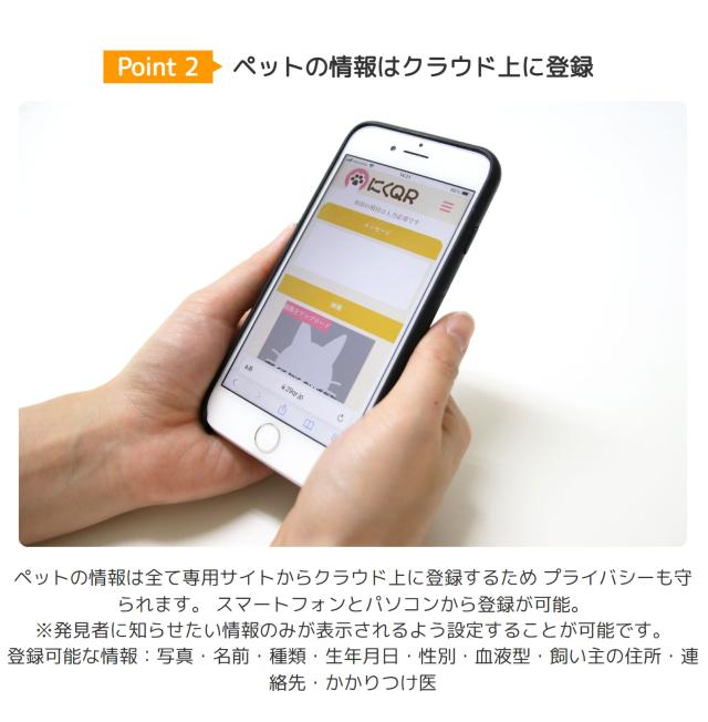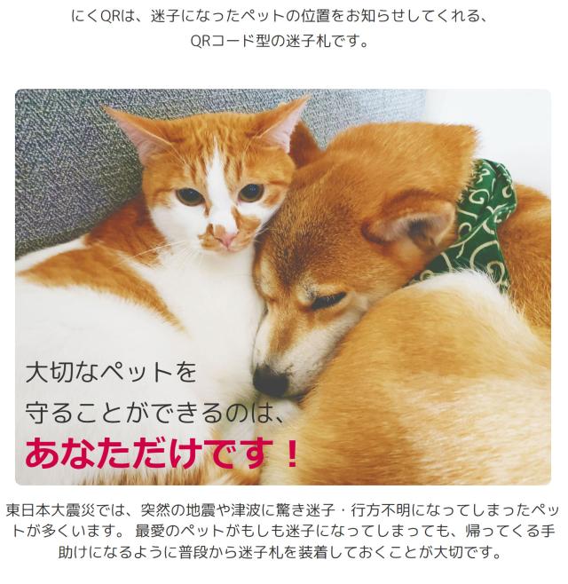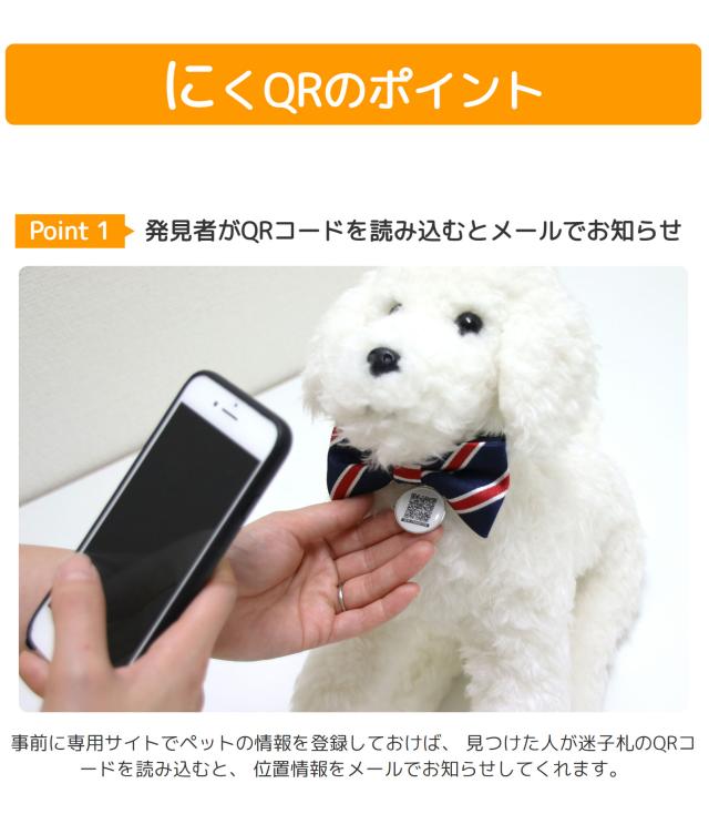 ペット迷子札にくQR ペット迷子札にくQR QRコード型迷子札 犬猫用 位置情報をメールでお知らせ 15年間利用可能 防水 月額費用不要 電池不要