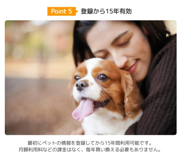 | 登録可能な情報 | 写真・名前・種類・生年月日・性別・血液型・飼い主の住所・連絡先・かかりつけ医 |