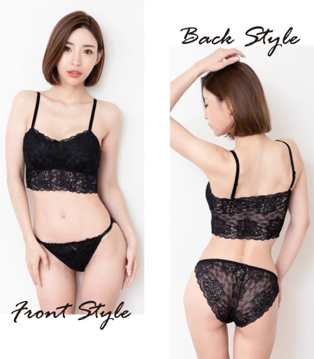 フローラルレースを贅沢に使用したエレガントな総レースのノンワイヤーブラセット。ワントーンカラーでシンプルなデザイン。ノンワイヤーなので締め付け感が無く長時間着けても痛くない快適ブラ。ショーツは総レースで透け感がありセクシーに肌魅せ。中央のリボンがアクセント。快適に過ごすノンワイヤーブラセット。チャコールグレーとブラックの2色展開です。