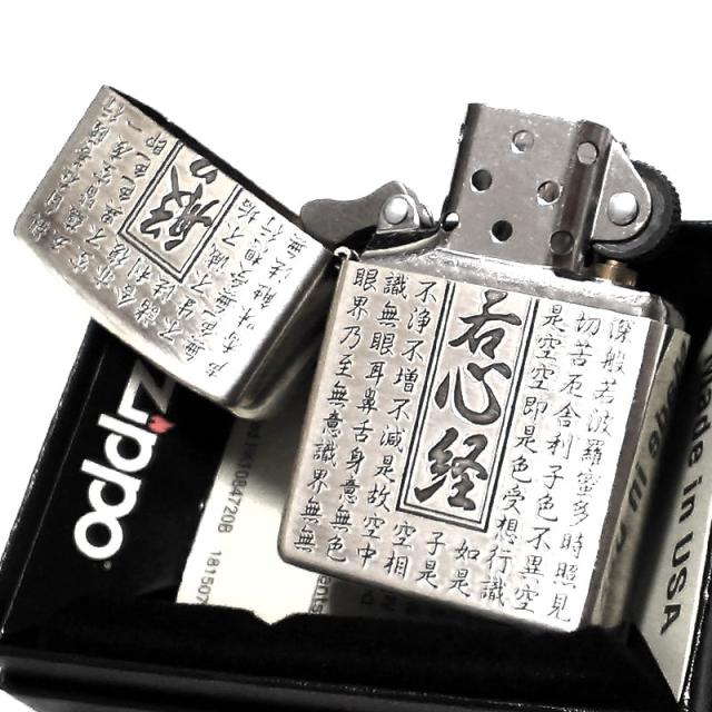 仏教の経典の一つである般若心境が前後面にデザインされたジッポライター!