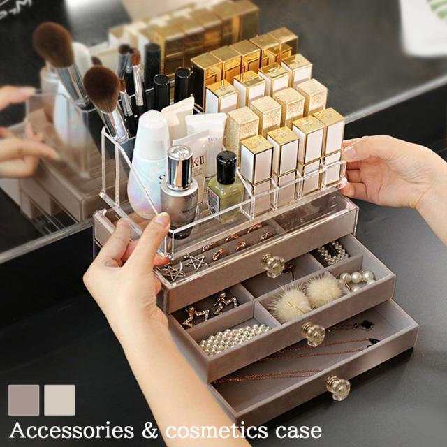 新作 大容量 アクリル アクセサリー&コスメ 収納ケース アクセサリーケース ジュエリーボックス トレイ コスメケース メイク リップ ネイル スタンド クリア 透明 雑貨 小物入れ 韓国 北欧 おしゃれ かわいい