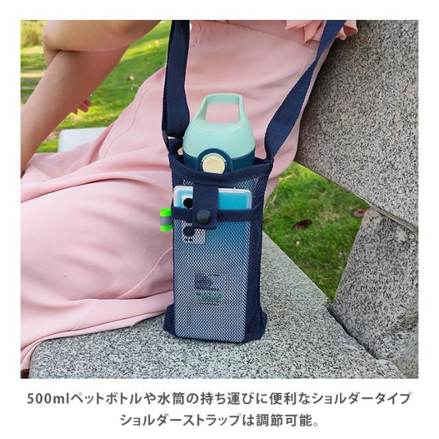 500mlペットボトルや水筒の持ち運びに便利なショルダータイプ。