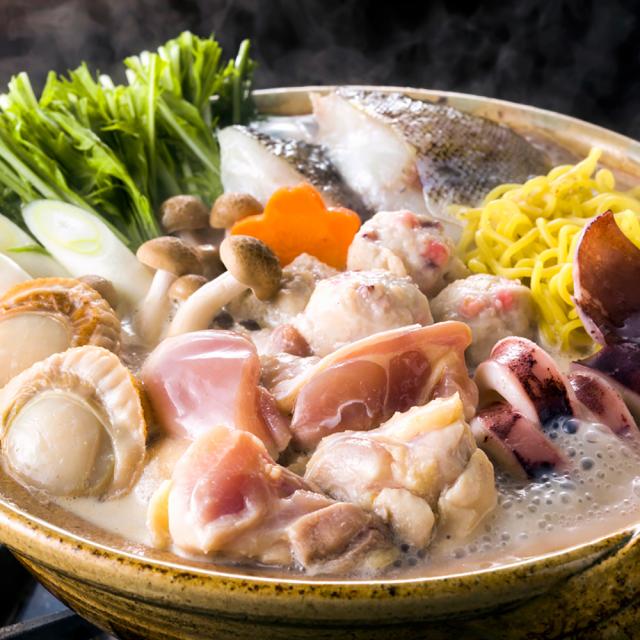北海道産の「鶏もも肉」を主役に「真いか」や「帆立」、「助宗鱈」等の海鮮素材を詰め合わせました。鶏白湯鍋のたれは各素材とよく絡み、鶏の旨味たっぷりです。お好みで白菜や豆腐、もやし、ネギなどと一緒に煮込んでからお楽しみください。